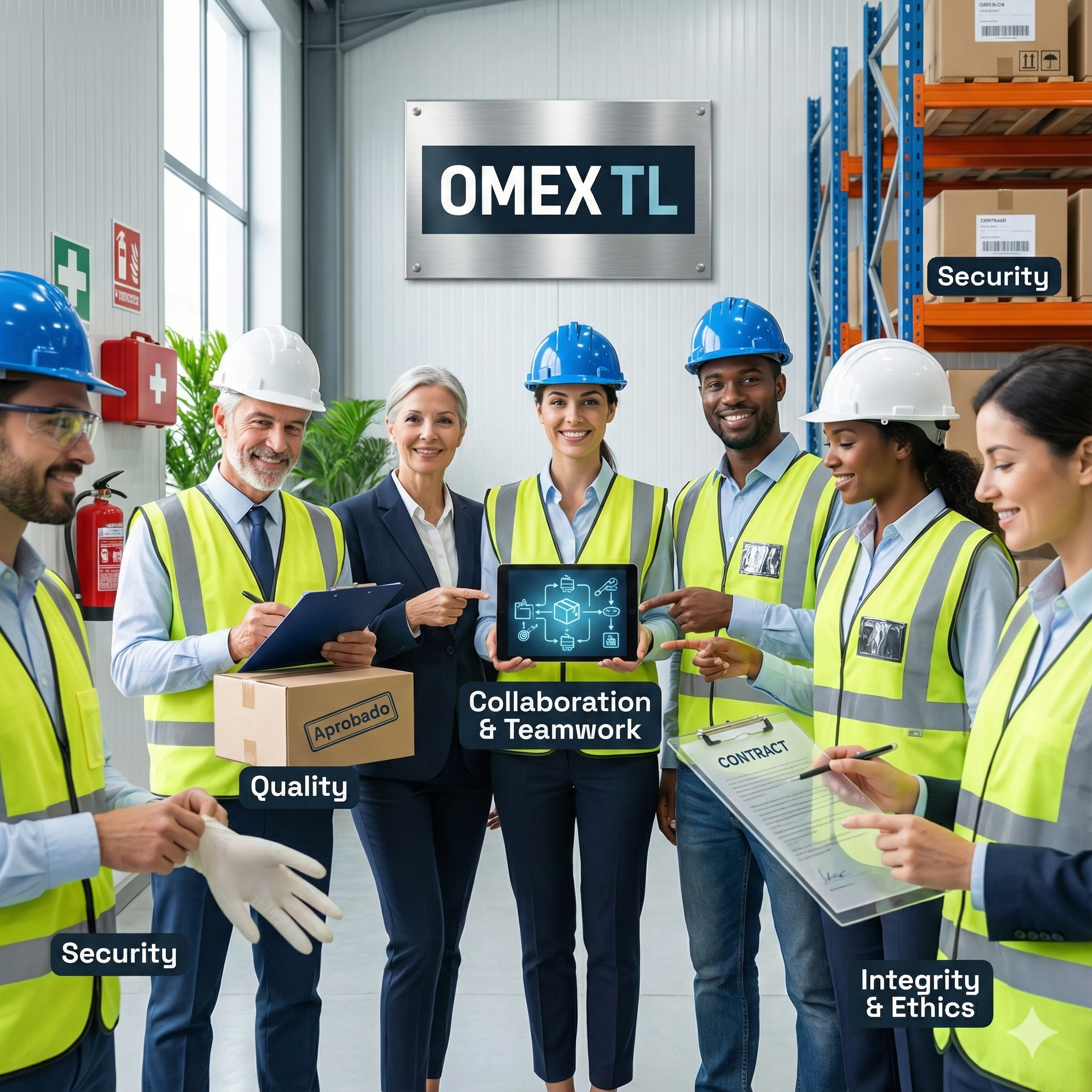 En OMEX TL, nuestros valores son el pilar de nuestra misión. La innovación nos impulsa a mejorar continuamente y a ofrecer soluciones logísticas más eficientes. La calidad es nuestra promesa de satisfacer y superar las expectativas de nuestros clientes. La seguridad es nuestra prioridad, garantizando la protección de nuestros empleados, clientes y mercancías. Actuamos con integridad y ética, siendo transparentes y honestos en todas nuestras relaciones. Fomentamos la colaboración y el trabajo en equipo para alcanzar objetivos comunes. Finalmente, el respeto guía nuestras interacciones, creando un entorno inclusivo y digno para todos.